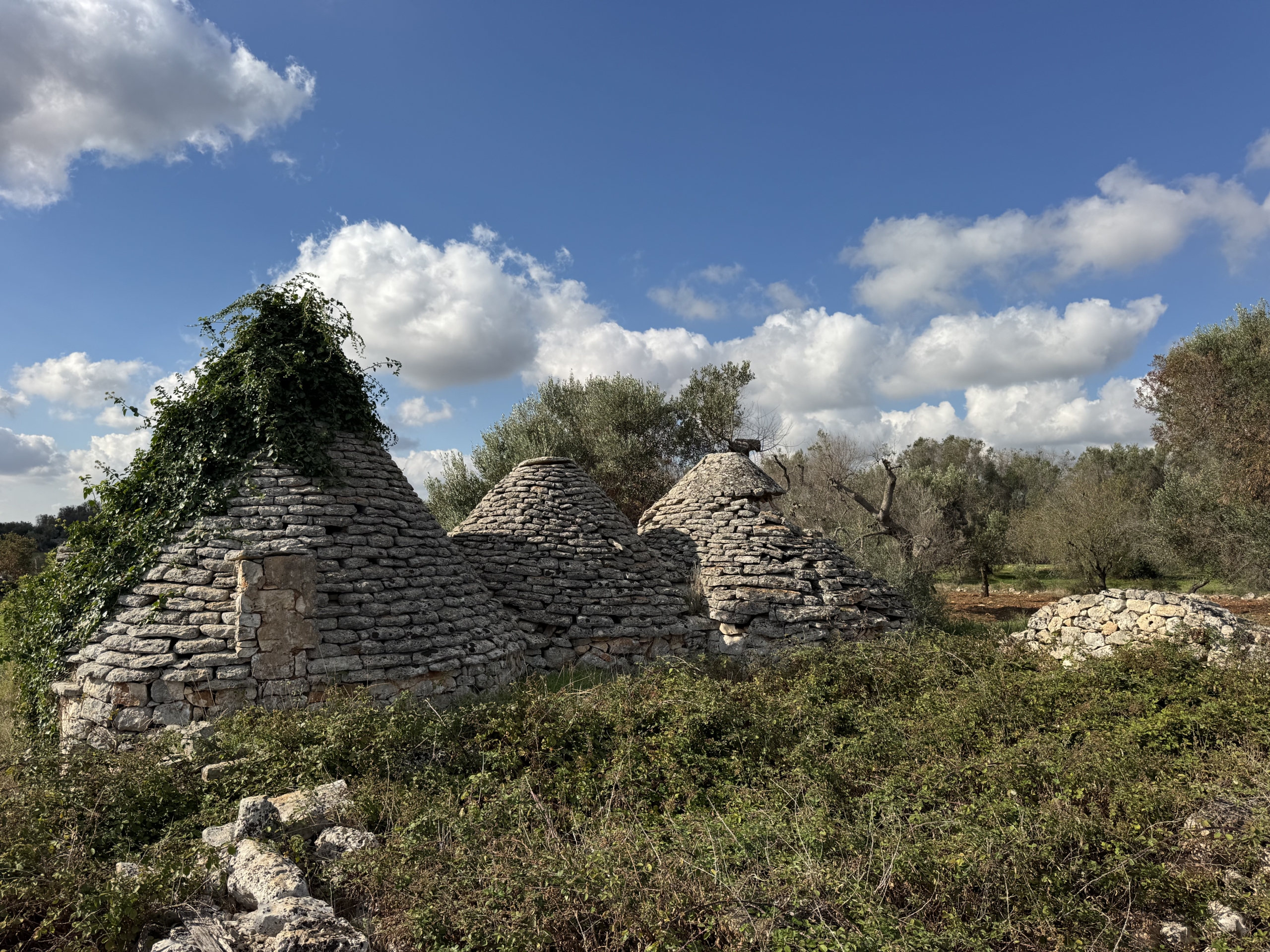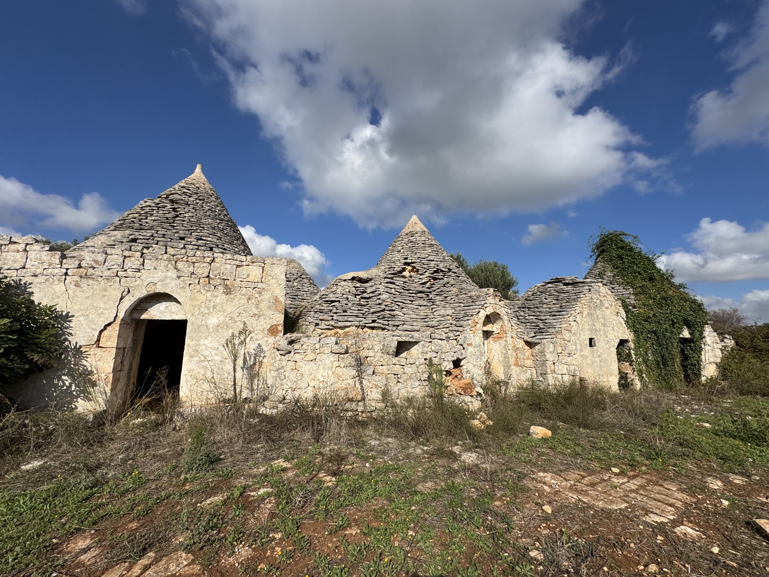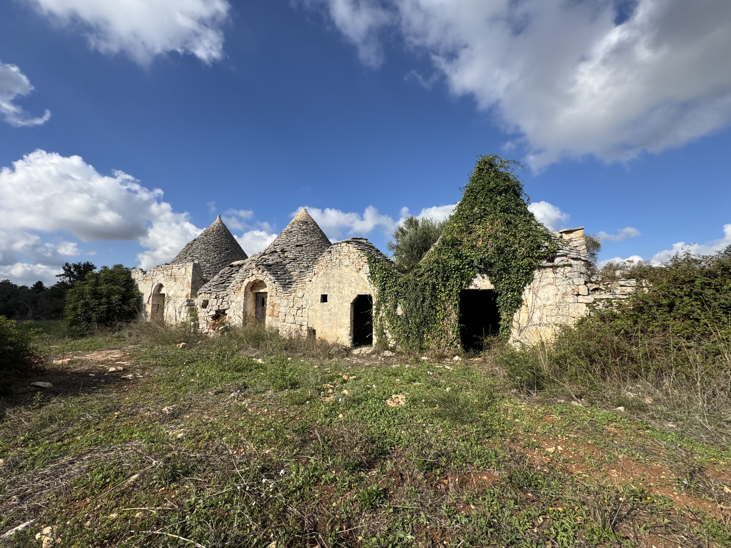 🏡 Buildable plot with 3 trulli (17 cones in total), offering an overall internal area of around 100–120 sqm, located in the countryside of Ceglie Messapica (Province of Brindisi / Apulia region).