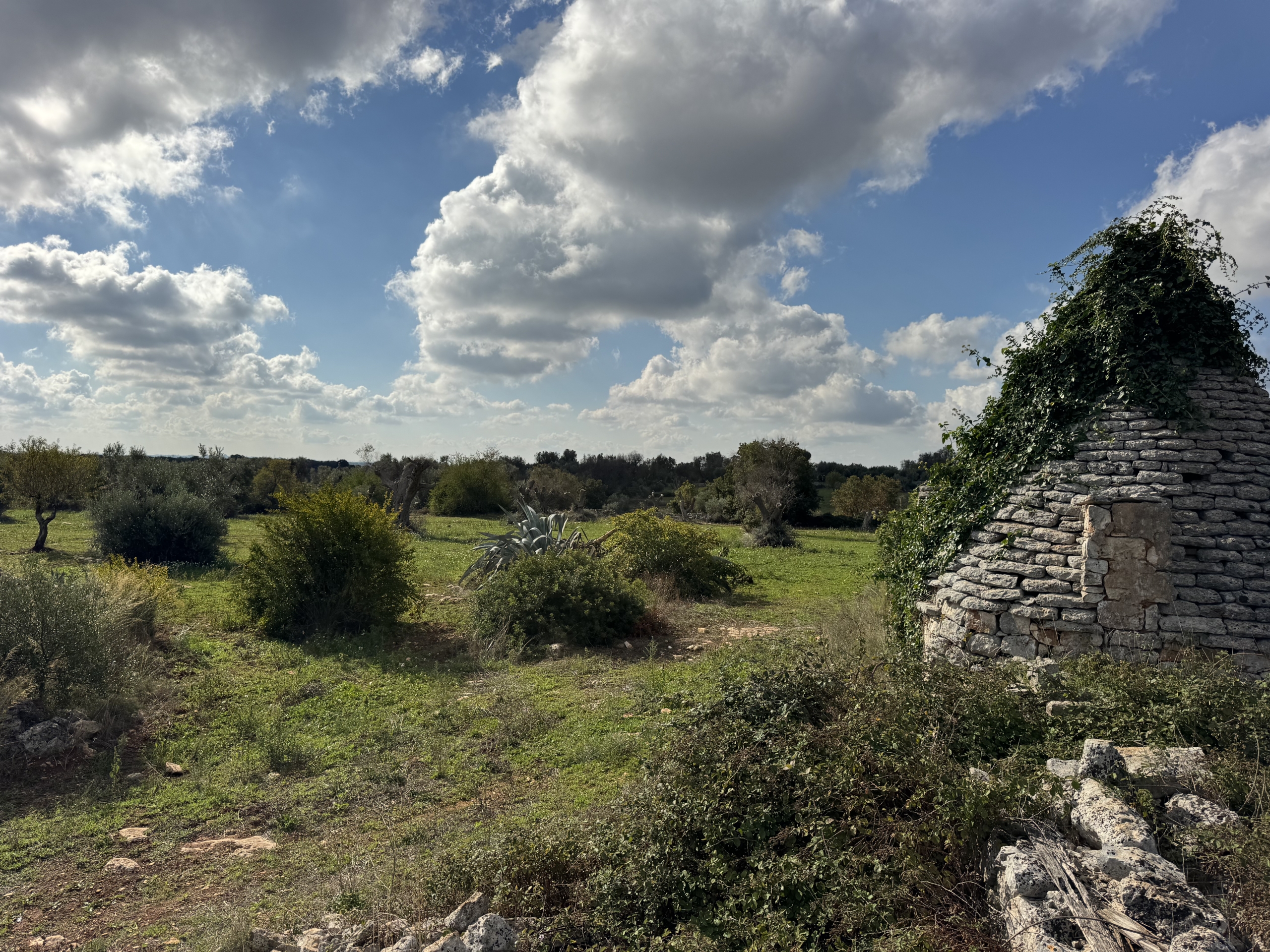 📍 Ideally located between Ceglie Messapica, San Michele and Francavilla Fontana, the land is gently sloping, bordered by traditional dry-stone walls, and includes 3 trulli to be renovated.