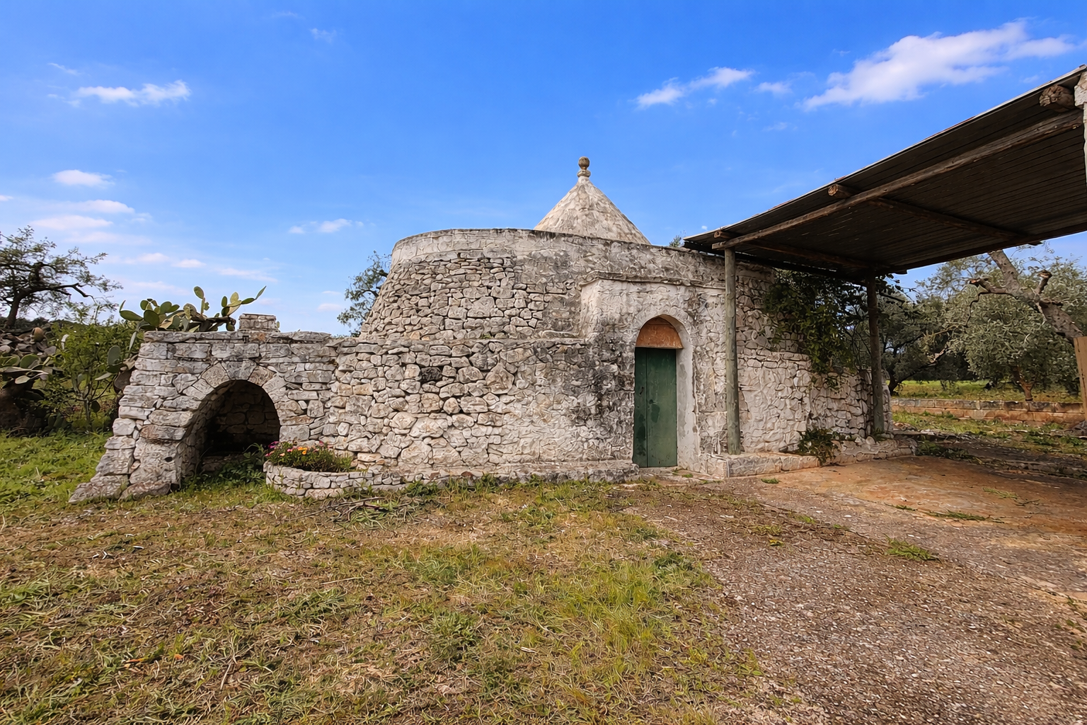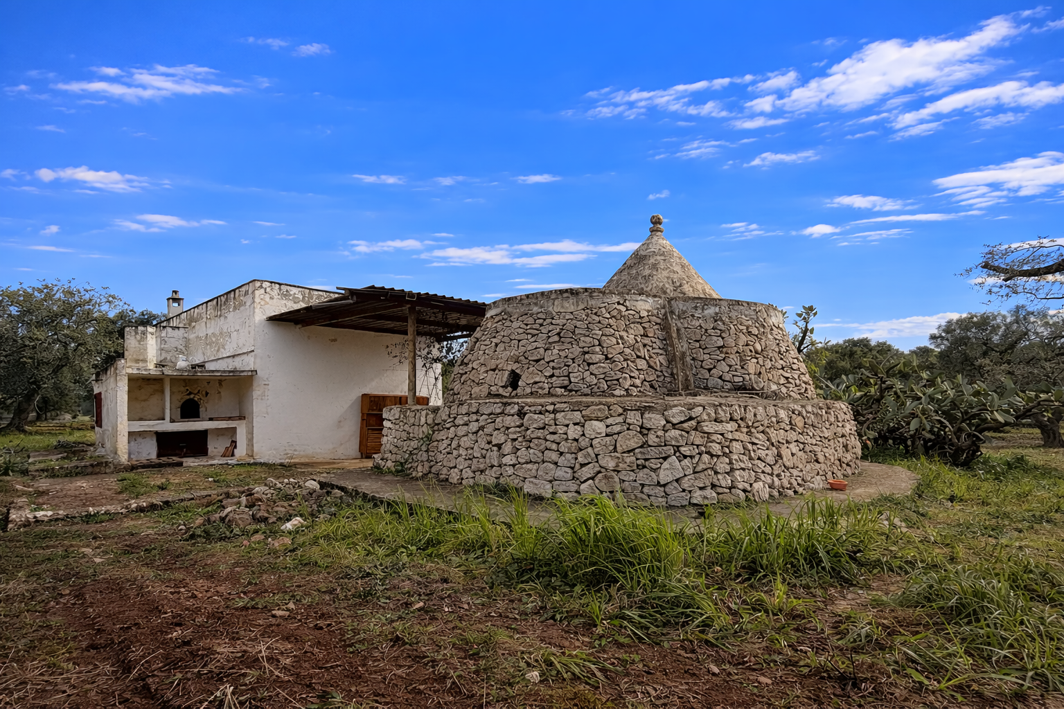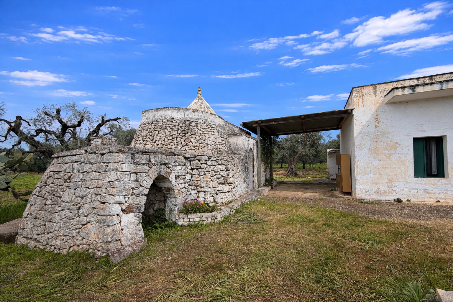 • 1 badkamer (mogelijkheid om een tweede badkamer te creëren in de trullo)