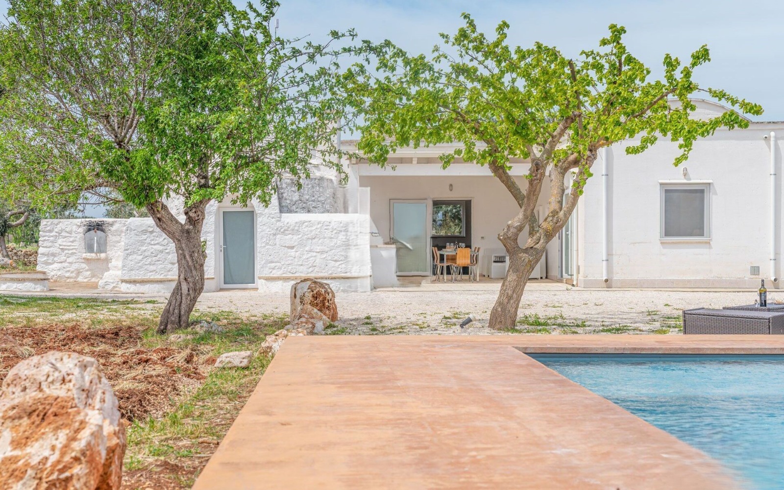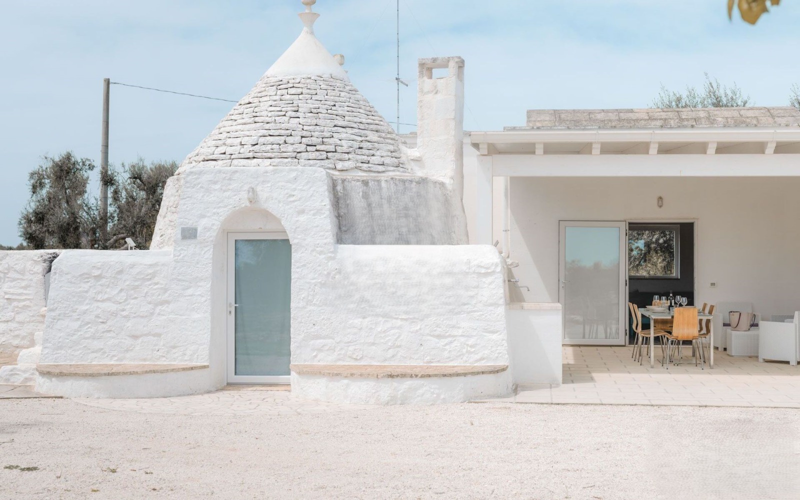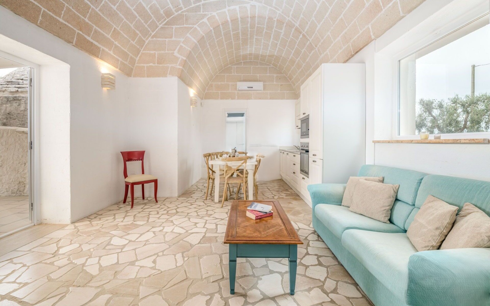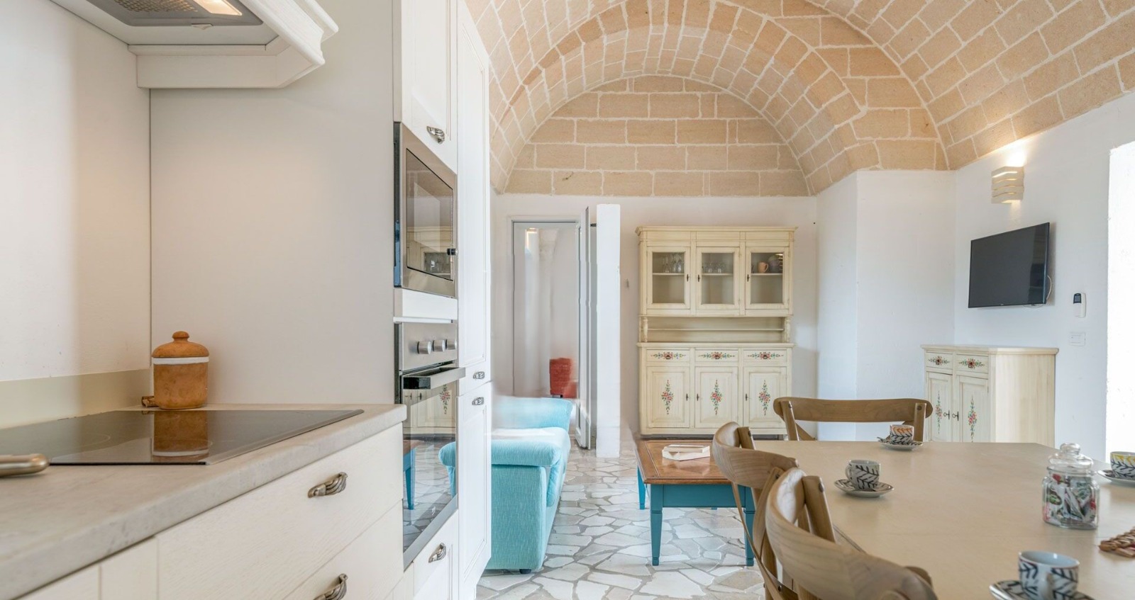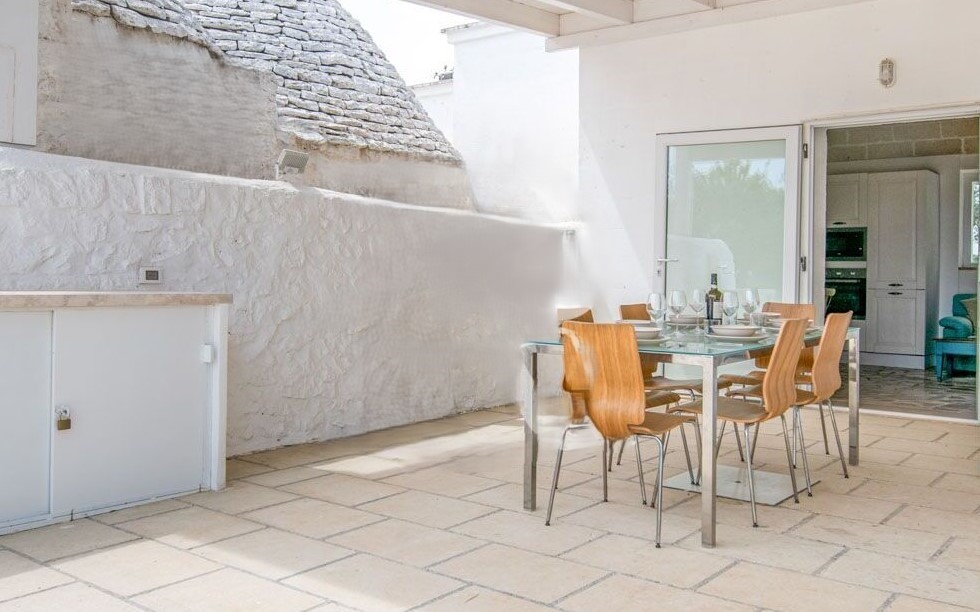 ⚠️ The villa is the result of an elegant extension of an original trullo, featuring a cozy fireplace and beautiful exposed stone vaulted ceilings.