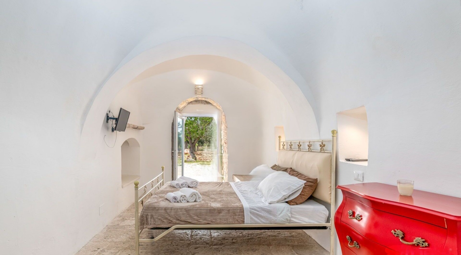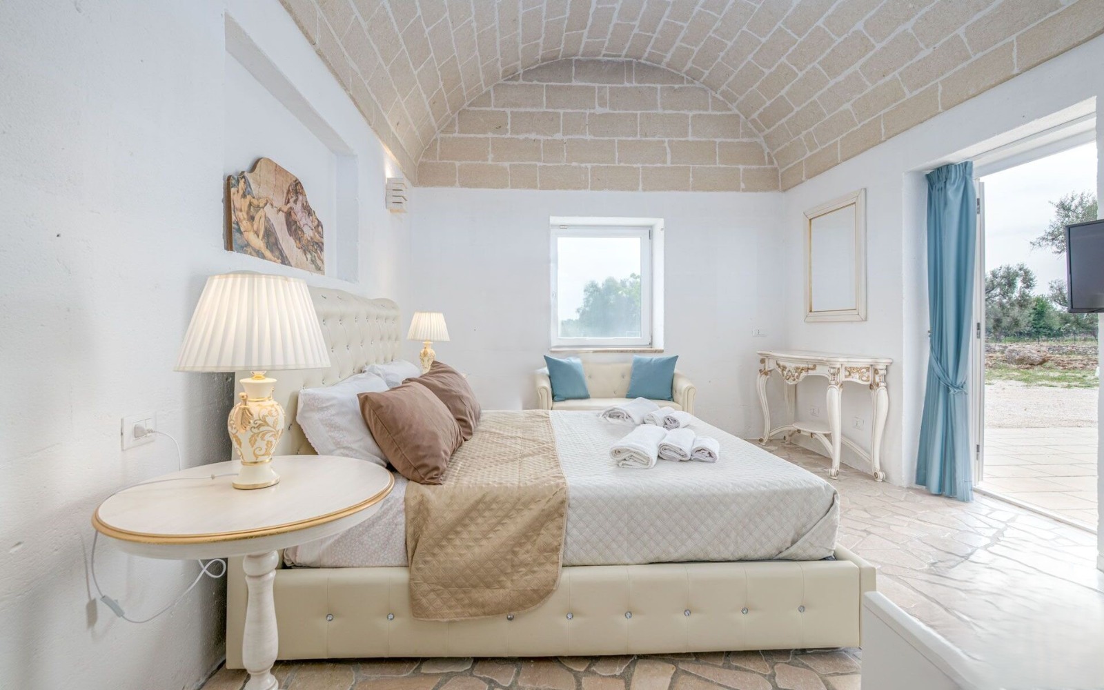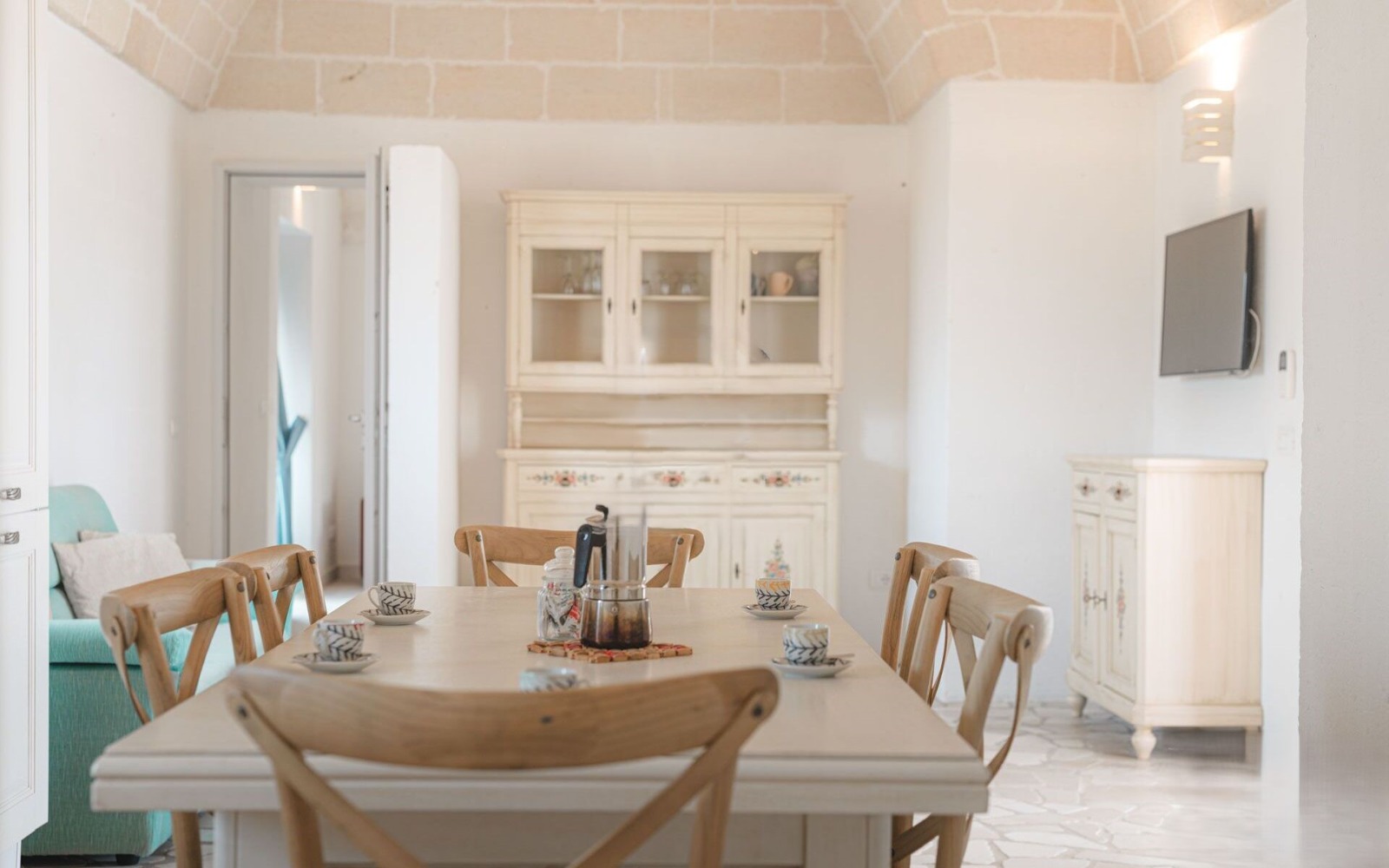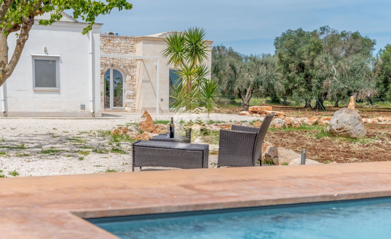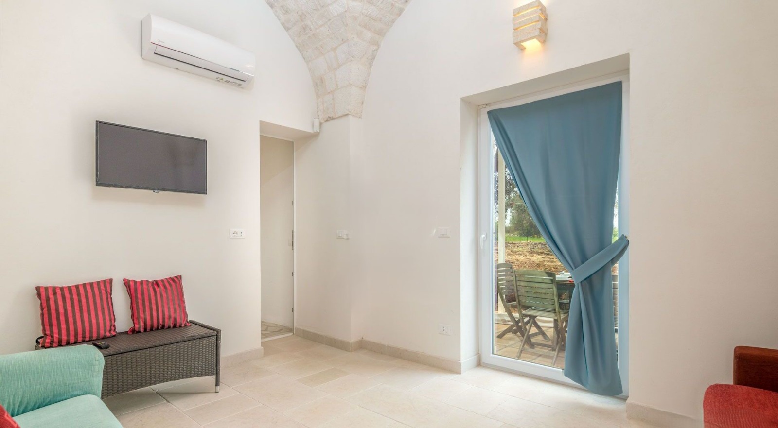 ⚠️ The villa is the result of an elegant extension of an original trullo, featuring a cozy fireplace and beautiful exposed stone vaulted ceilings.
